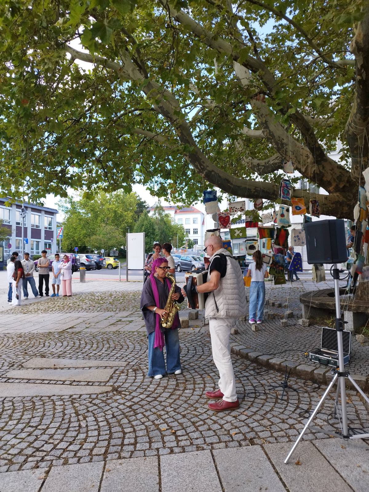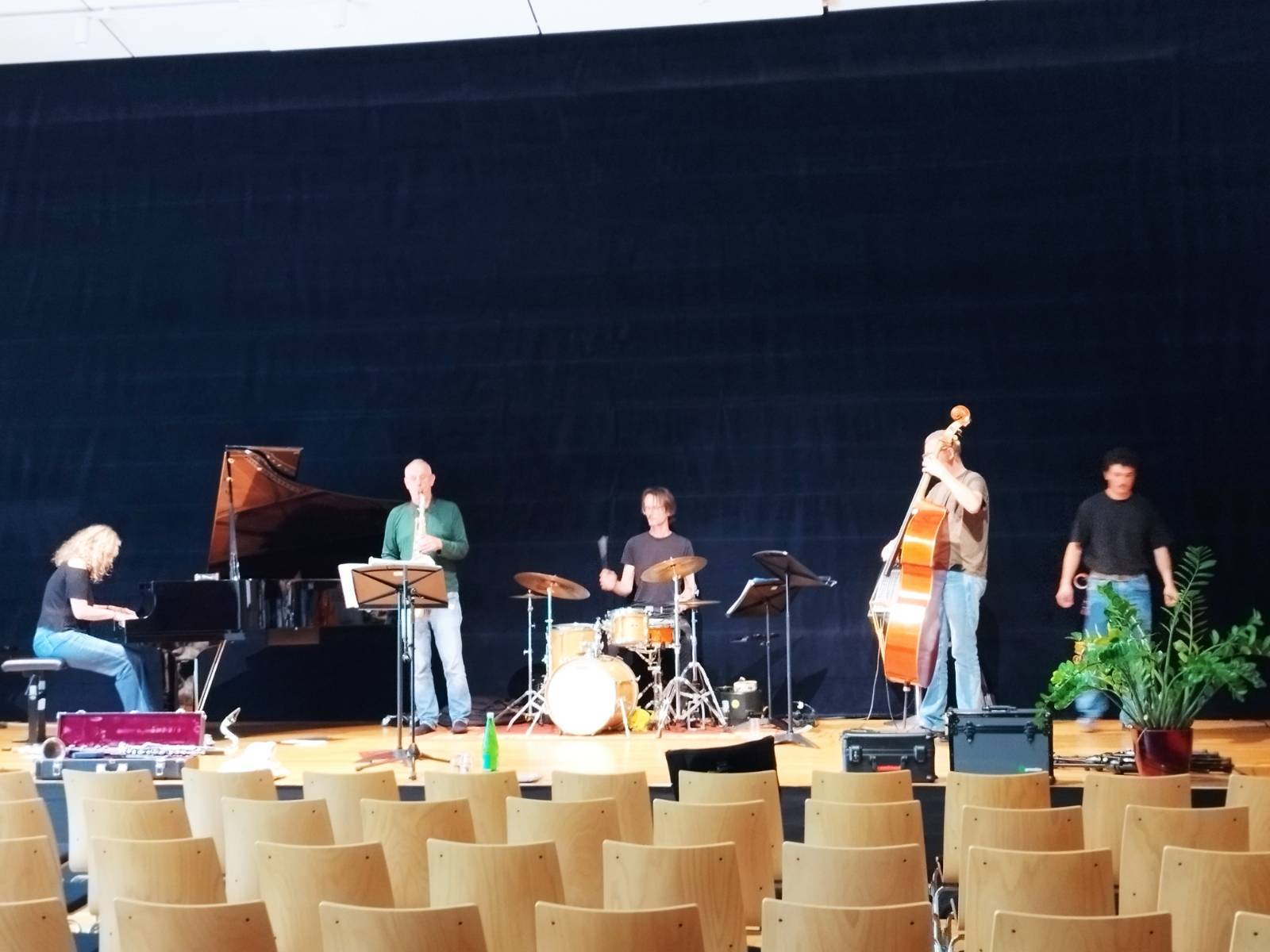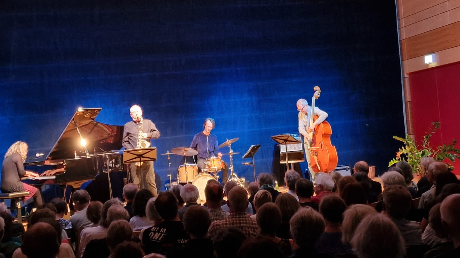 Im zweiten Teil des Abends gab es fantastische Musik vom Berliner Julie Sassoon-Quartett, dessen Percussionist Rudi Fischerlehner ebenfalls aus der Region stammt. Jazzige Eigenkompositionen, nuancenreiche Vielfalt am Klavier, Saxophon, Bass und Schlagzeug sowie einfühlsame Improvisationen, gebettet in beglückendes Zusammenspiel, verdichteten das Thema des Abends und brachten Vielfalt und Frieden auf der musischen Ebene dem begeisterten Publikum näher.
