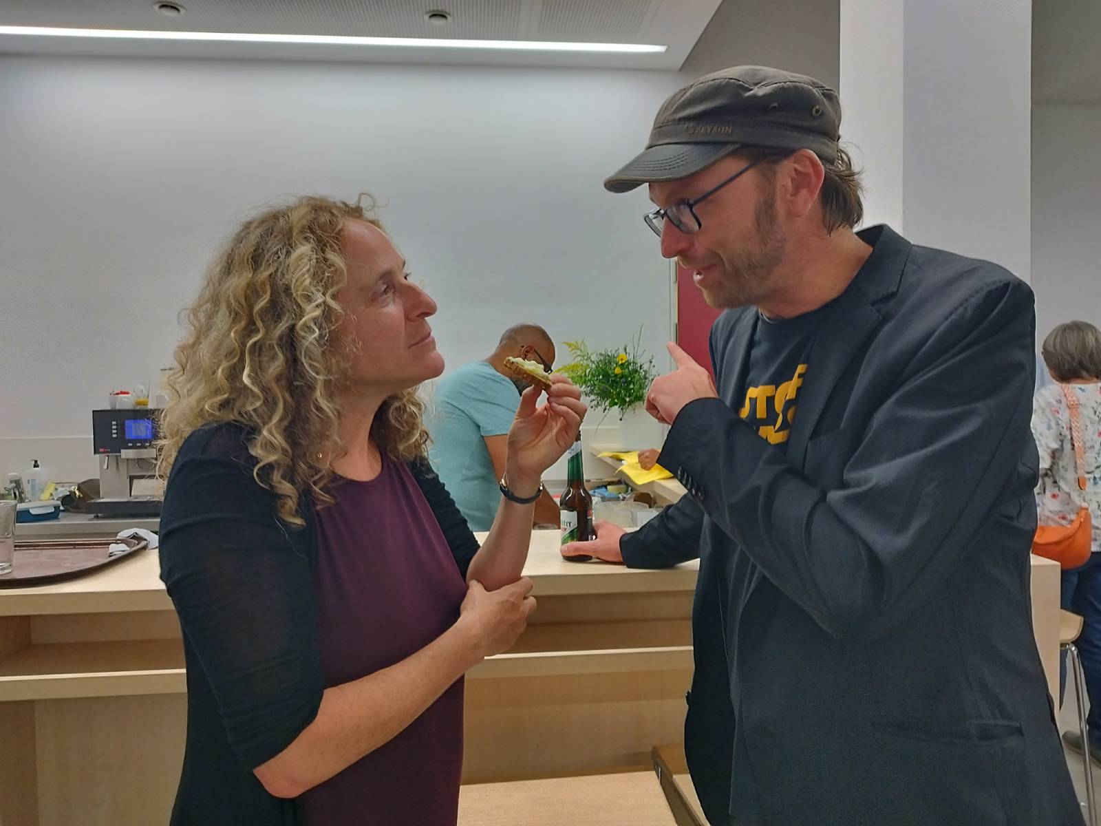 Menschen aus vielen unterschiedlichen Ländern trafen sich zum Plaudern und Kennenlernen.