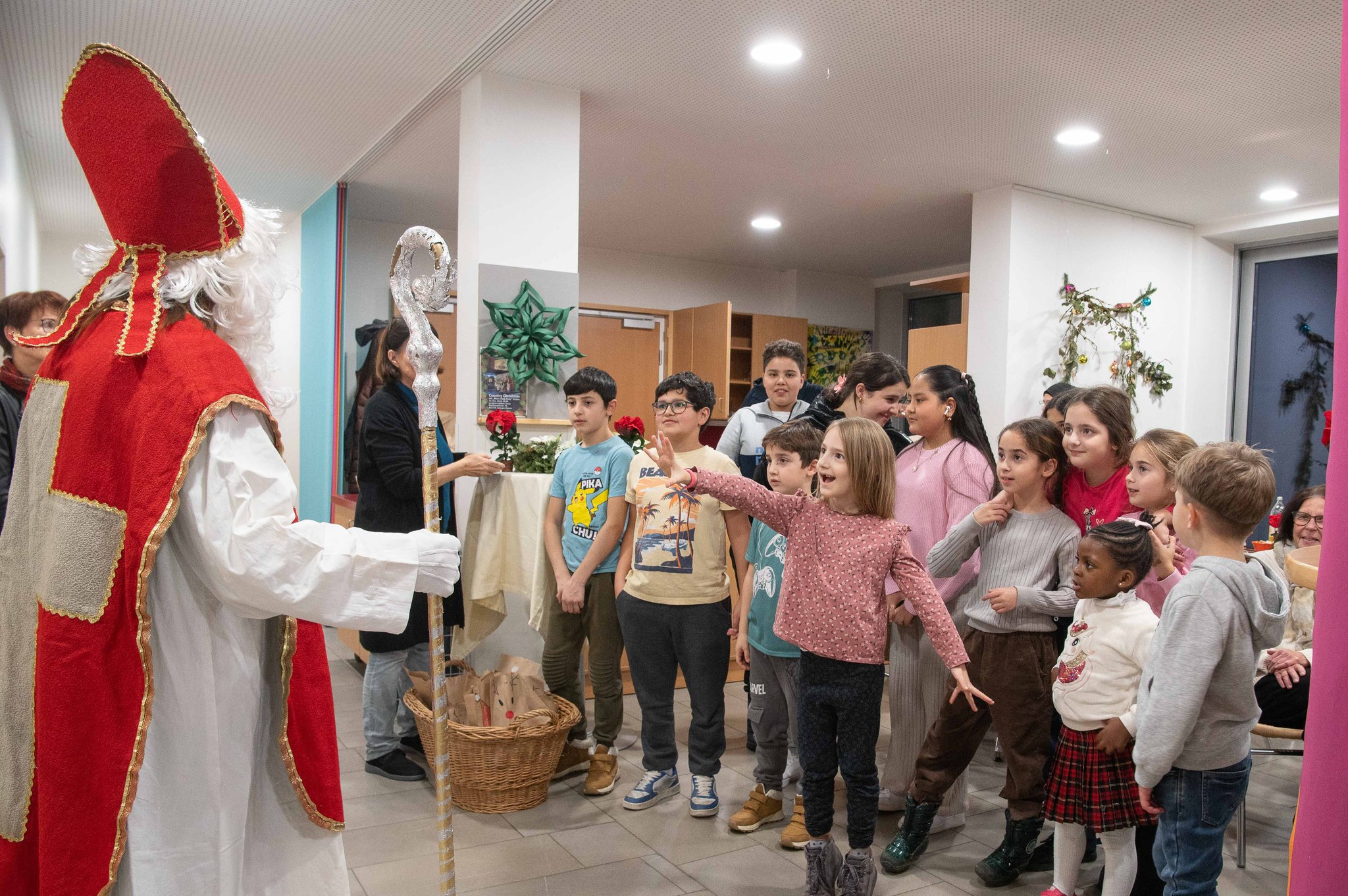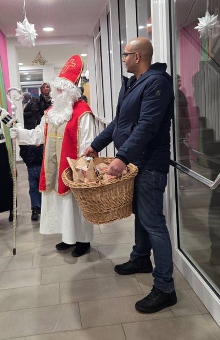 Auch in diesem Jahr hat uns der Nikolaus bei unserem interkulturellen Stammtisch in der Aula der SOB besucht! Das war natürlich ein großes Ereignis für die Kinder. Er hat uns die Nikolausgeschichte erzählt und für jedes Kind hat er ein kleines Sackerl mit Süßigkeiten mitgebracht. Dafür haben ihm alle Kinder gemeinsam, egal aus welchem Land, das Nikolauslied gesungen, und das mit großer Begeisterung!