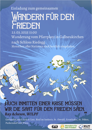 Am Sonntag, 23.März gibt es an verschiedenen Orten in Oberösterreich und Niederösterreich die Gelegenheit, für den Frieden auf die Straße zu gehen! (Ried im Innkreis, Linz, St. Pölten, Ernsthofen, St. Oswald und in Wien)