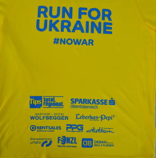 von Seiten der Veranstalter bewusst verzichtet – der gute Zweck und das Zeichen gegen den Krieg waren ganz klar im Vordergrund. Jeder Teilnehmer bekam am Start ein Laufshirt in den Landesfarben