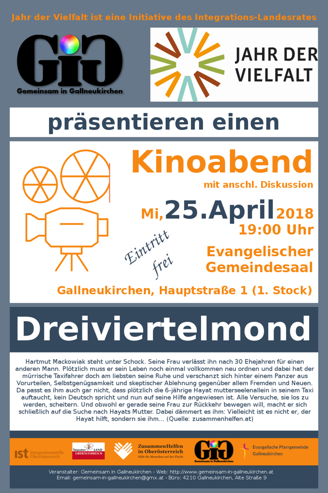 Mi, 25.04.2018 19:00 Uhr - Kinoabend "Dreiviertelmond" im Evangelischen Gemeindesaal Gallneukirchen